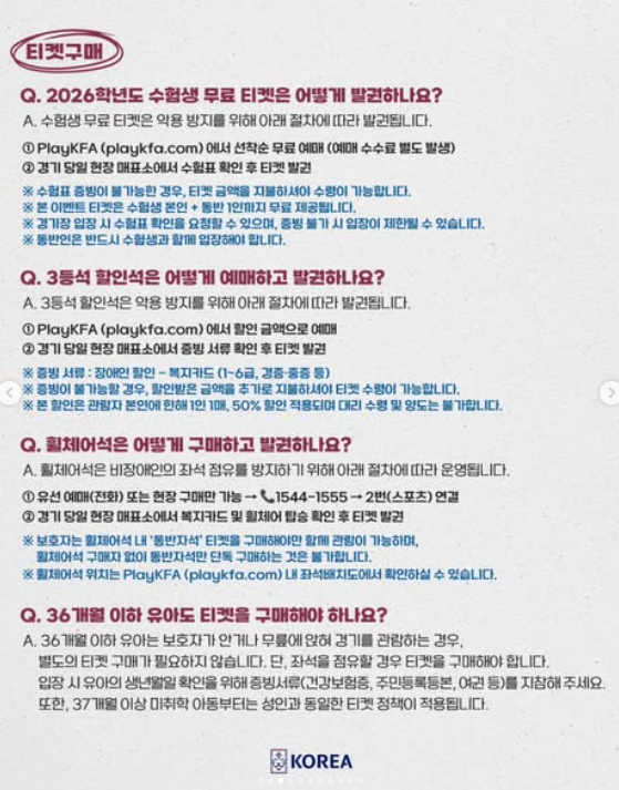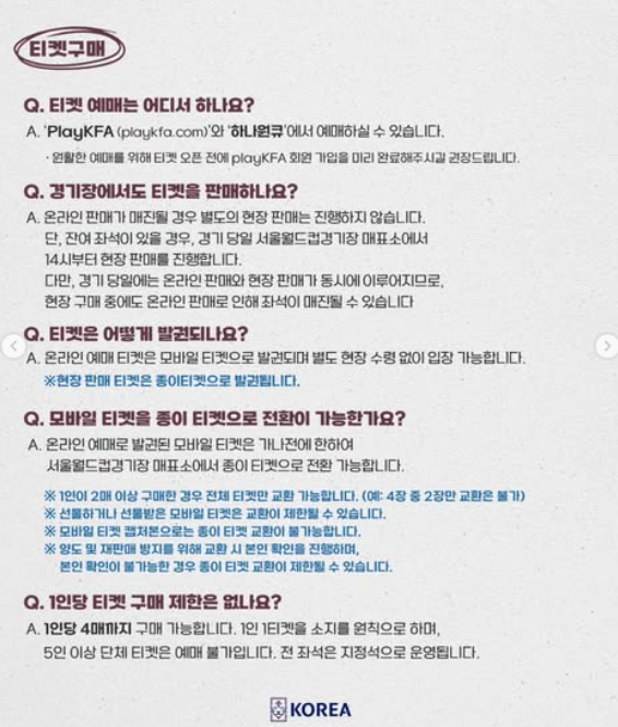 - 예매처: 인터파크 티켓, KFA 공식 홈페이지