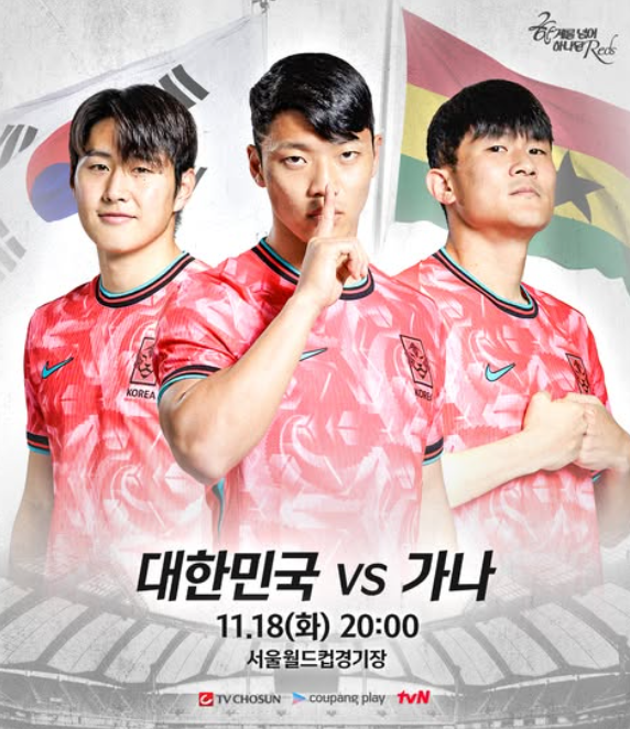 이번 대한민국 가나 중계는 11월 18일 화요일 저녁 8시, 서울월드컵경기장에서 진행됩니다.