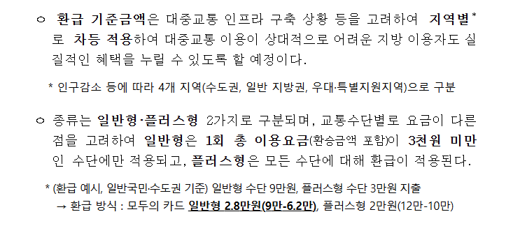 둘째, 일부 고가 교통수단이 포함되는 경우에는 일반형 기준이 아닌 플러스형을 선택해야 더 많은 혜택을 누릴 수 있기 때문에 사전 이해가 필요합니다.