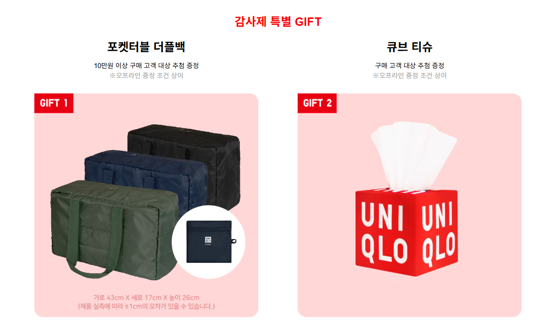 2025년 유니클로 감사제에는 구매 금액에 따라 특별 증정품이 마련되어 있습니다.