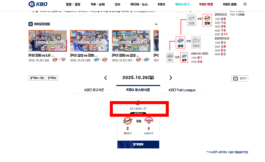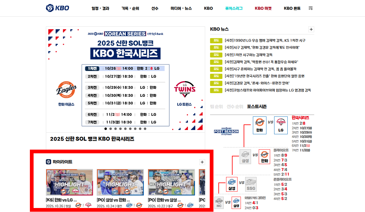 2025 한국시리즈의 생생한 순간을 다시 보고 싶다면? 복잡한 유료 플랫폼을 찾을 필요 없이, KBO 공식 웹사이트에서 무료로 하이라이트 영상을 볼 수 있습니다.