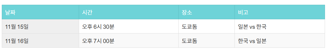이번 행사는 2026년 World Baseball Classic(WBC)를 앞두고 한국과 일본이 준비하는 평가전의 성격이 강합니다. 두 나라는 Pool C에서 마주할 가능성이 높은 만큼 실전 감각을 점검하는 기회입니다. 공식 일정으로는 일본 도쿄돔에서 11월 15일과 16일 양일간 맞대결이 예정되어 있습니다.